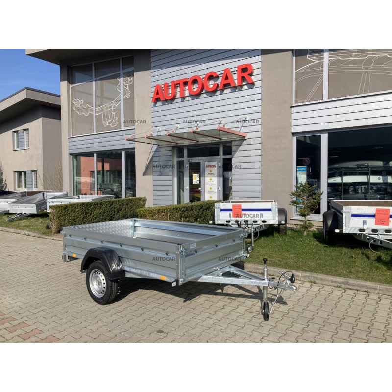 Remorcă basculabila, monoax, fără sistem de frânare cu roți lângă zona de încărcare. Toate elementele sunt galvanizate la cald - cadru, bare de tracțiune, console. Suporturile traverselor sunt înșurubate în trei puncte de montare. Remorca are o podea din placaj impermeabil, iar părțile laterale sunt presate la rece pentru o mai bună rezistență și duritate a oblonului în sine. Această soluție garantează o rigiditate și o durabilitate și mai mari a remorcii. Atât oblonul față, cât și cel din spate sunt detașabile și rabatabile.
