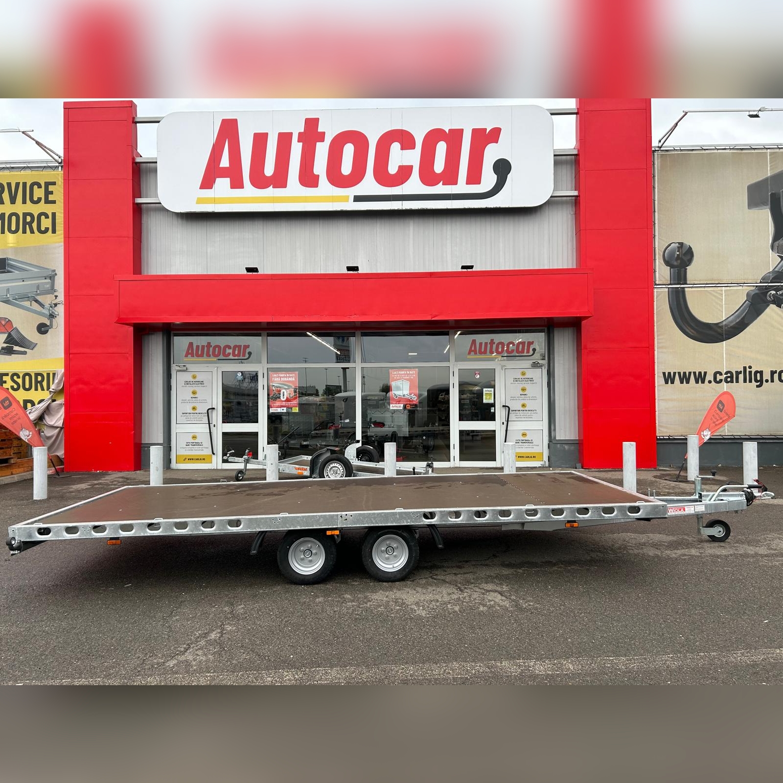 Remorcă cu două axe frânată cu o greutate totală de 2700 kg, oferă o soluție excelentă pentru transportul sigur al mărfurilor și autoturismelor. Această remorcă a fost proiectată pentru a oferi versatilitate și adaptabilitate pentru diverse nevoi de transport. Construită pentru robustețe și performanță, este partenerul ideal pentru diverse tipuri de transport. Remorca are pereți laterali galvanizați și placaj rezistent la apă.